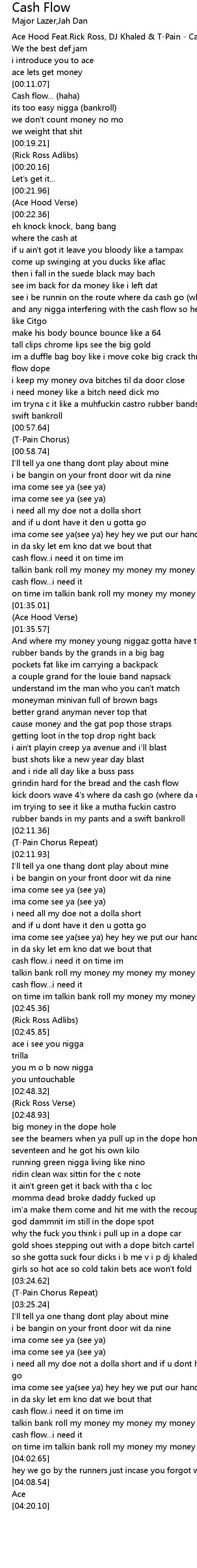 Ace Hood Ft T Pain And Rick Ross Cash Flow Information